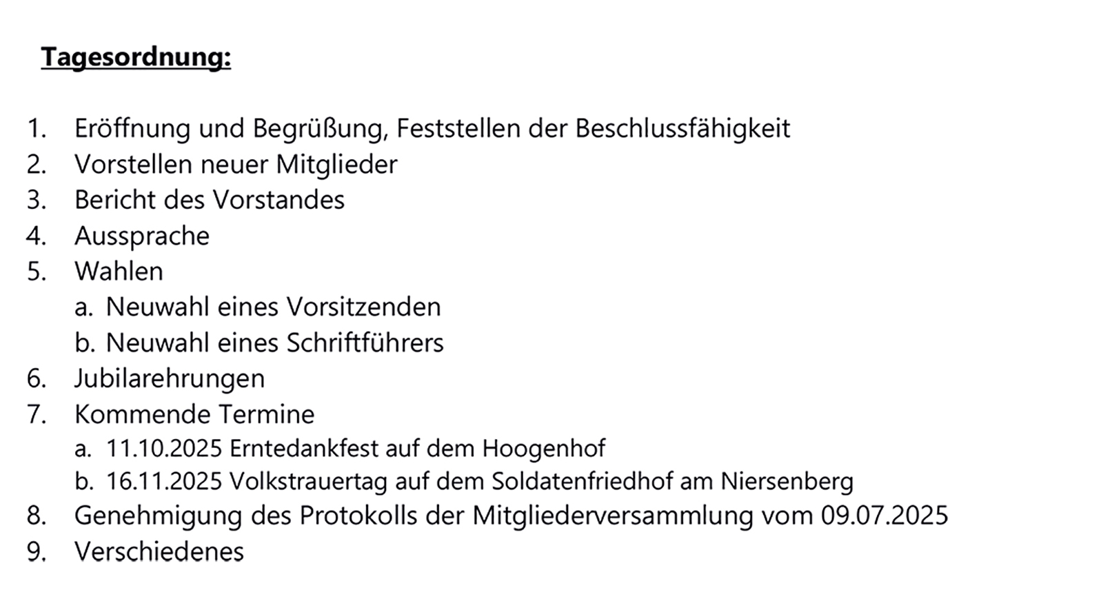 In einer kurze Ansprache wies unser neuer erster Vorsitzender auf die kommenden Termine hin.